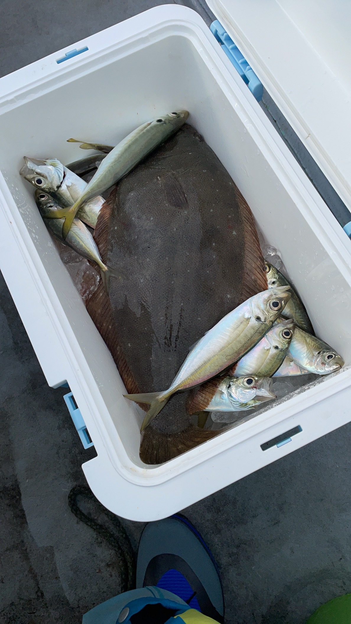 8時頃までは休み休みゆっくりとアジを釣っていましたが、そのあとに1人がヒラメが釣ってから