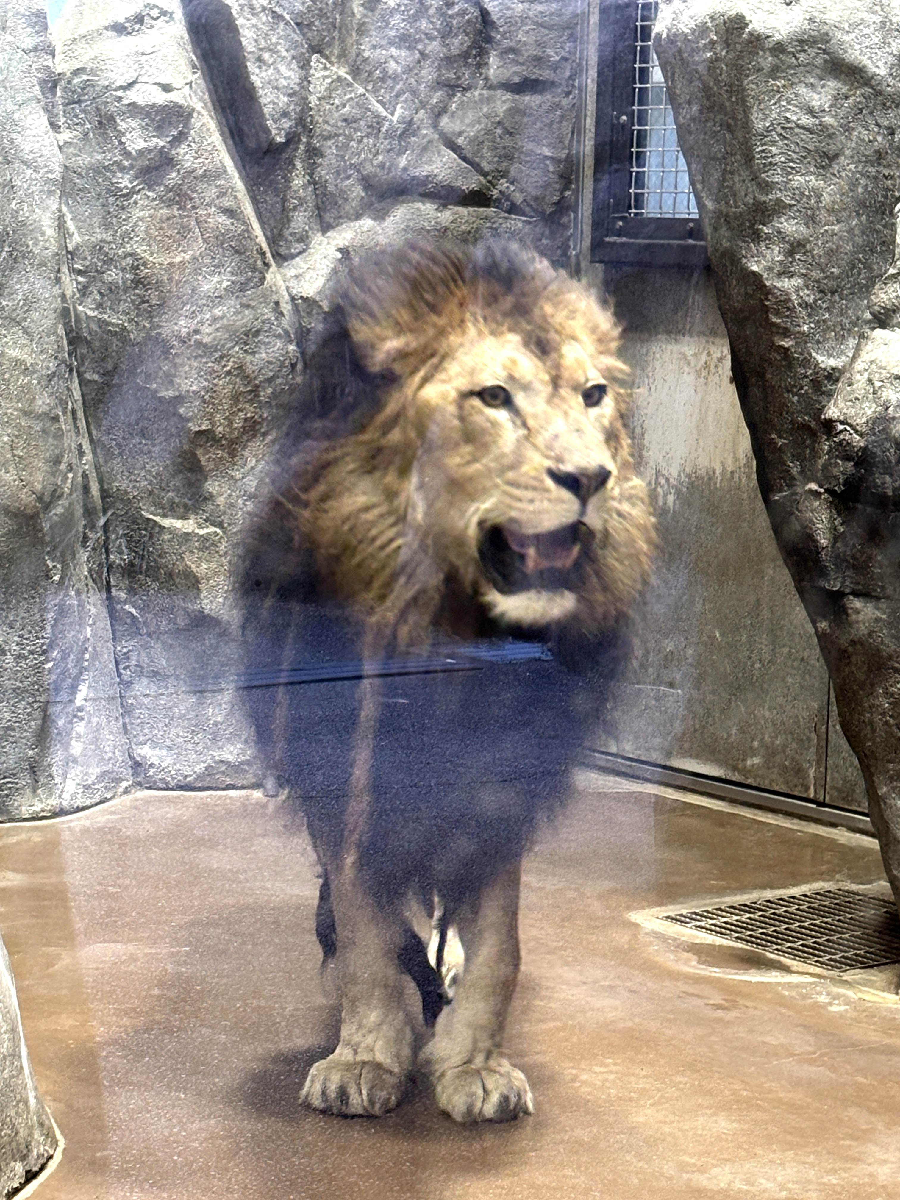 近くで見るライオンやトラ、熊など迫力があり大人達のほうが