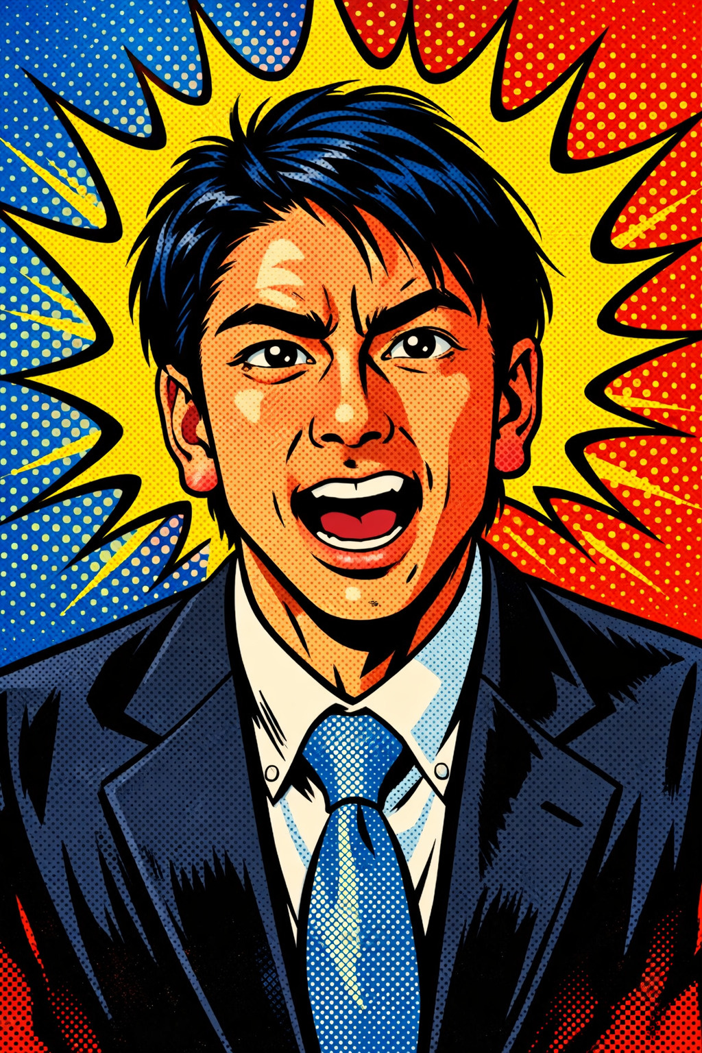 私の写真で「力強いイラストを作ってみて」とやってみたらこんな写真が出来上がりました(笑)