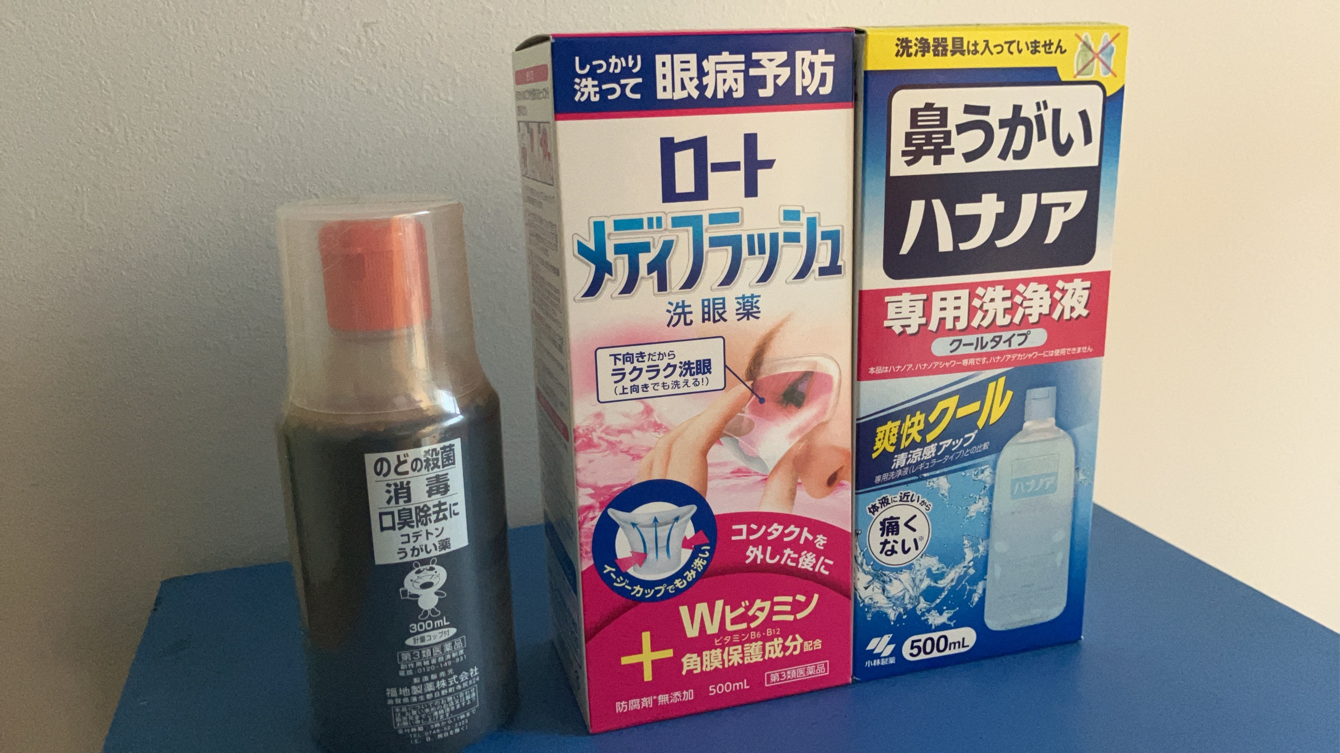 洗眼薬は朝晩結構効き目があります。もちろん不織布マスクは必須です。